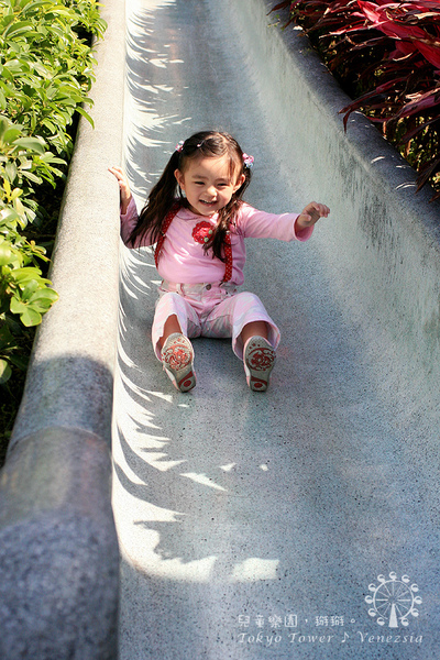 進入園區,第一個看到的,就是再熟悉不過的溜滑梯了。原來辛苦爬上的階梯,迎接的,就是這樣天真無邪的笑靨。