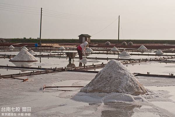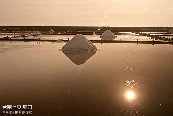 到達台南七股,已經是太陽快下山的時候。本來以為要上鹽山,原來是在鹽場,不過旅途的驚喜都是這樣來的吧! 南台灣的太陽真的夠威了,也或者說,這裡的人們也依著太陽而生。 婦人們用收鹽竹耙著結晶池,雖然距離有些遠,但耙子在池子裡發出「噶噶」聲,卻充斥著整個鹽場。 鹽埔耀起金光,映得我睜不開眼。平靜的水面,好像對映著此刻心境,所有紛擾全部放下。 + 更多照片>>>